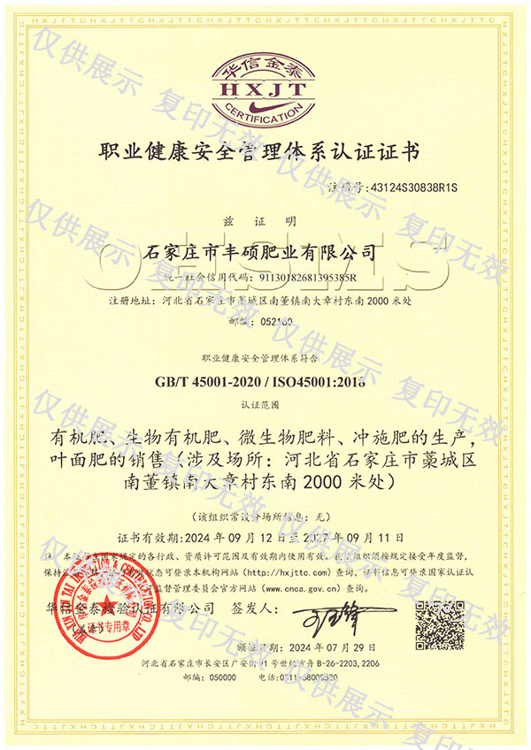 石家莊市豐碩肥業(yè)有限公司是一家集新型肥料的研發(fā)、制造、營銷、服務(wù)于一體的高新技術(shù)企業(yè),公司自2008年創(chuàng)辦以來,一直致力于新型肥料的技術(shù)研發(fā)和市場推廣。公司組建了豐碩新型肥料研究中心(院士專家企業(yè)工作站),自主知識產(chǎn)權(quán)研發(fā)團(tuán)隊(duì)專業(yè)科研人員20余人,獲得了多項(xiàng)肥料國家發(fā)明專利。公司目前已擁有發(fā)酵類有機(jī)肥、微生物菌劑、生物有機(jī)肥、土壤調(diào)理劑、大量元素水溶肥、含腐植酸肥料、含氨基酸肥料、中微量元素肥料等8大品類,“金維克”、“豐碩沃農(nóng)”等2大自有品牌,擁有20多個(gè)暢銷品種。目前,我公司已經(jīng)通過了“ISO9001 質(zhì)量管理體系認(rèn)證”、“ISO14001 環(huán)境管理體系認(rèn)證”、“OHSAS18001 職業(yè)健康管理體系認(rèn)證”。...